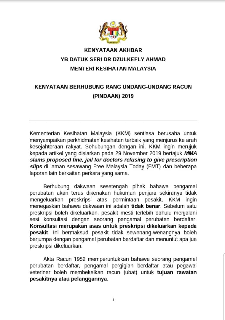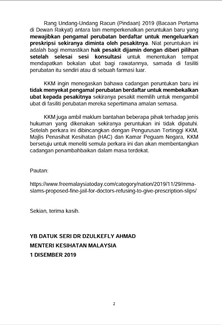 Penafian Pengisytiharan Cuti Umum Pada Hari Isnin 2 Mac 2020